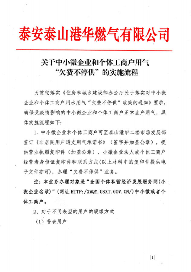 關(guān)于中小微企業(yè)和個體工商戶用氣“欠費不停供”的實施流程