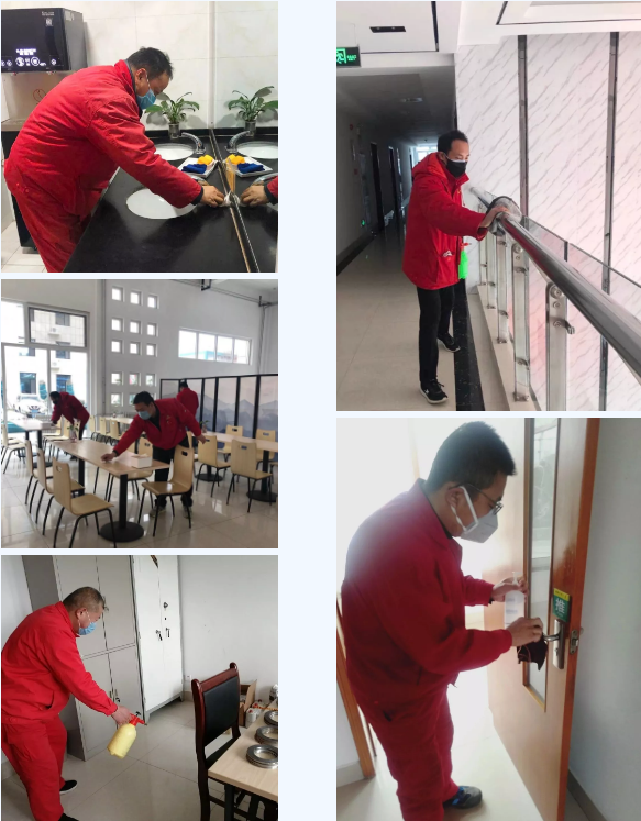 同時,黨員與值班人員自發(fā)對公司所有的衛(wèi)生間、扶梯、門把手、電源開關(guān)、餐桌椅、垃圾桶等公用設(shè)施進行了全面、細致的消毒工作,使消毒殺菌趕在病毒傳播之前。