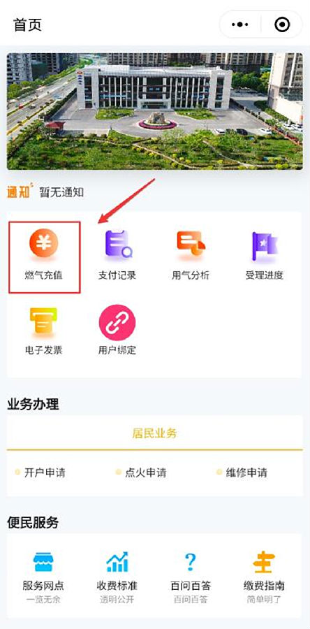? 非IC卡用戶點擊首頁的“燃氣充值”,會直接跳轉至繳費詳情頁面,可直接點擊頁面預設定的充值金額進行整數(shù)金額繳費,或在“其他金額”處填寫指定金額進行繳費。